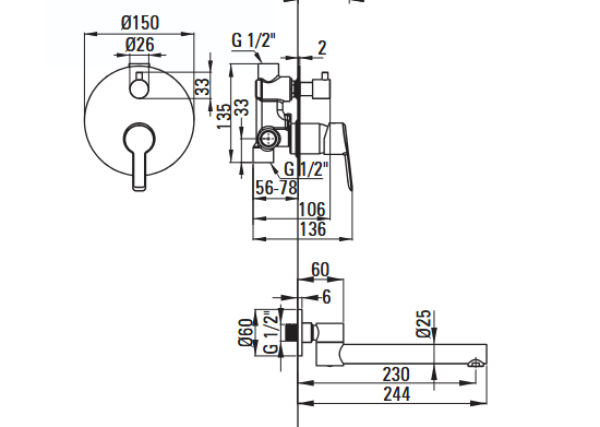 - Montaż podtynkowy zapewnia estetykę łazienki