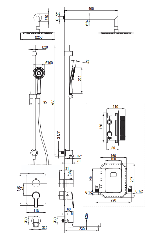 - Montaż podtynkowy zapewnia estetykę łazienki