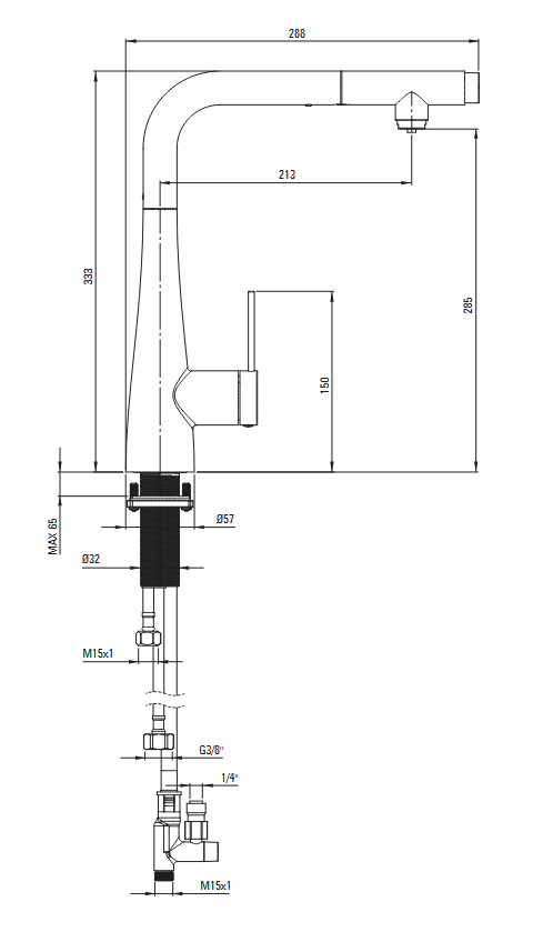 Deante ERIDAN bateria kuchenna z podłączeniem do filtra wody z wyciąganą wylewką stal szczotkowana BRE_F75M