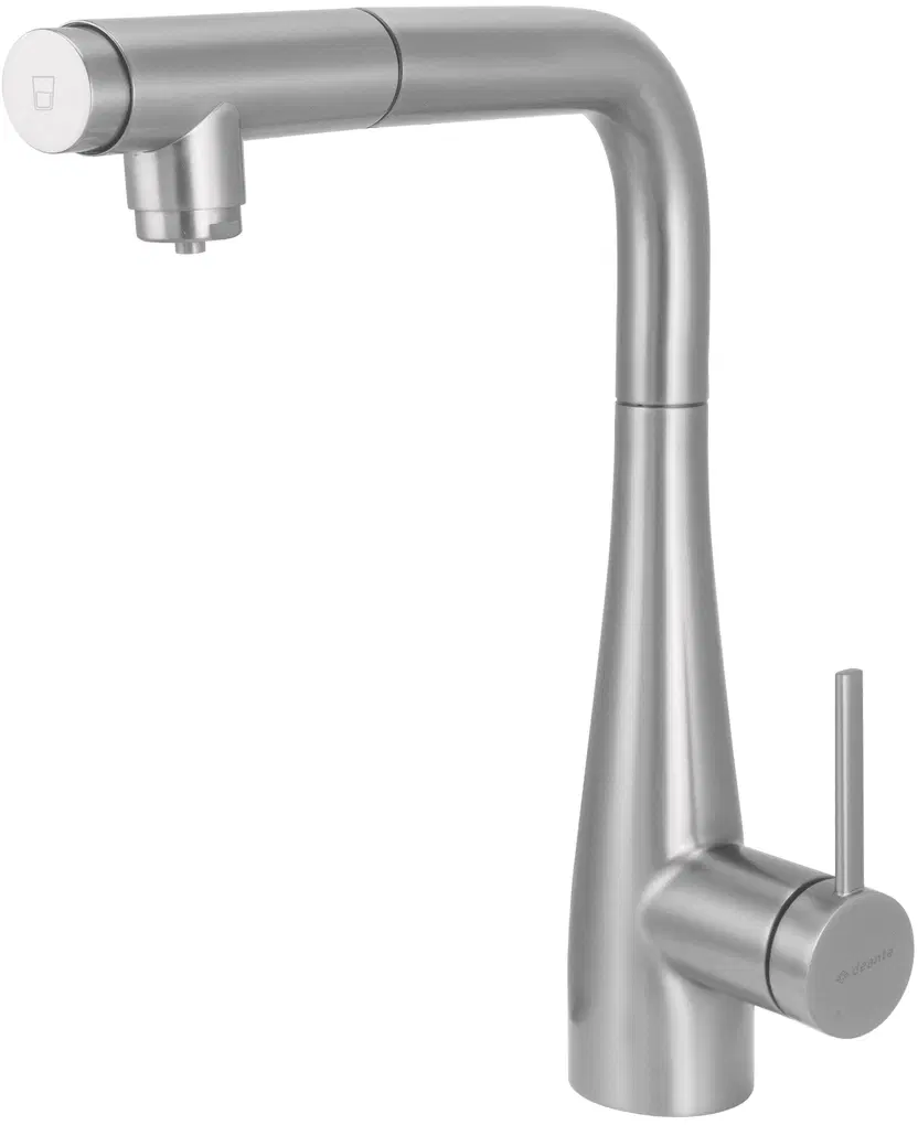 Bateria Eridan to połączenie elegancji i nowoczesnej technologii. Wykonana z najwyższej jakości stali, charakteryzuje się smukłym korpusem, który stopniowo rozszerza się ku dołowi. Jej innowacyjny design świetnie pasuje do każdego wnętrza, dodając mu niepowtarzalnego stylu. Zintegrowany aerator napowietrza strumień wody, zapewniając oszczędność i komfort codziennego użytkowania. Eridan to nie tylko zwykła bateria kuchenna – to ekologiczne rozwiązanie, które dba o zdrowie i środowisko. Dzięki unikalnemu podłączeniu do filtra wody, możesz łatwo uzyskać czystą, filtrowaną wodę, naciskając przycisk Click na szczycie wylewki. Wężyk wbudowany wewnątrz wylewki dostarcza wodę bezpośrednio z filtra, zapewniając jej najwyższą jakość. Wykończenie w stali szczotkowanej dodaje subtelnej elegancji każdej kuchni. Bateria doskonale komponuje się ze zlewozmywakiem granitowym z serii Eridan.