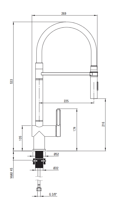 | Zasięg wylewki | 22,5 cm |