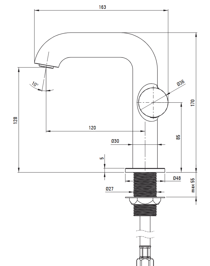 - Dźwignia umieszczona z boku ułatwia utrzymanie wylewki w czystości