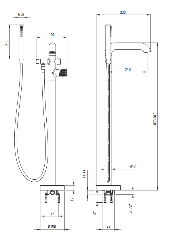 Deante SILIA HEXA bateria wannowa wolnostojąca stal szczotkowana BHS_F17M