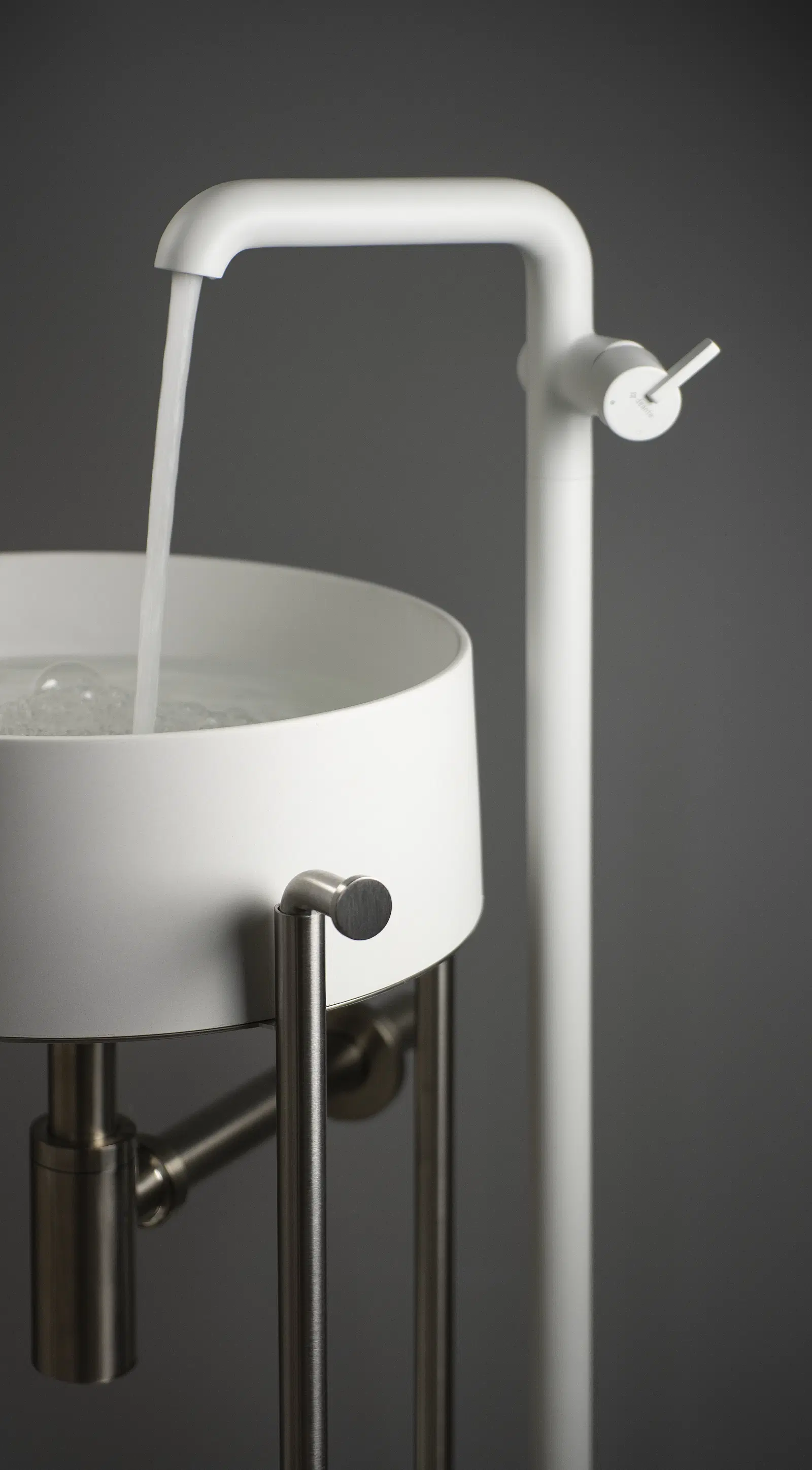 Materiał i wykończenie: Korpus wykonany z wysokogatunkowego mosiądzu, pokryty innowacyjną matową powłoką Bianco, odporną na odciski palców i łatwą w czyszczeniu