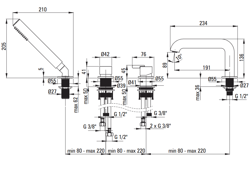 Deante SILIA bateria wannowa 4-otw. chrom BQS_014M