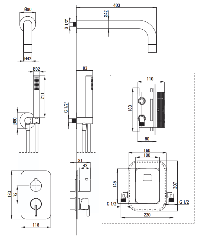 | Element podtynkowy | W komplecie |