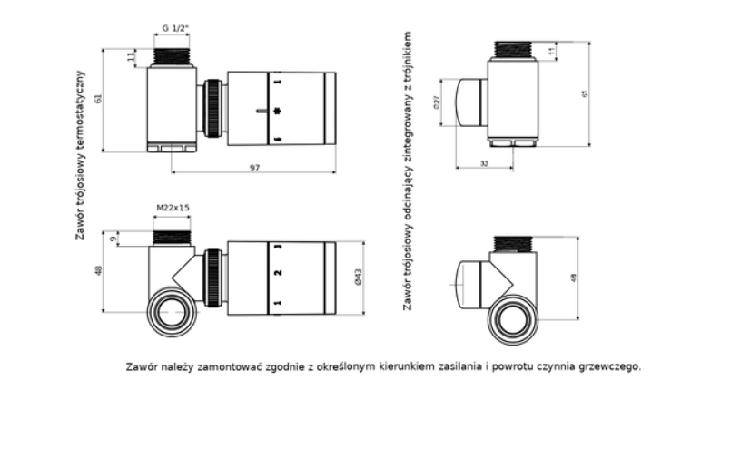 - 1 x zawór termostatyczny osiowy (lewy lub prawy)