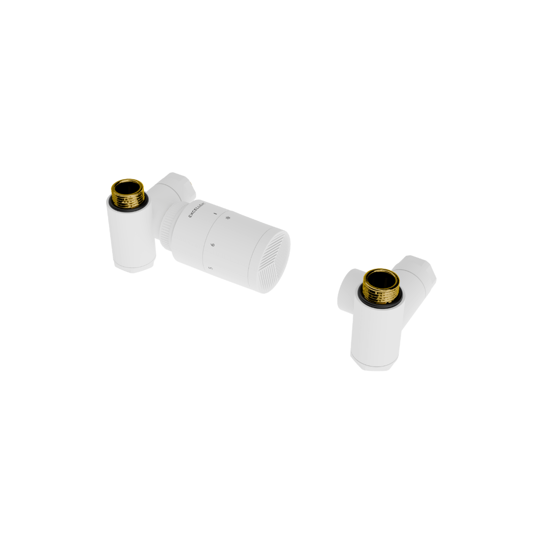 Excellent CALDO zestaw trójosiowy z głowicą termostatyczną z opcją montażu grzałki, lewy, biały mat GREX.CA10.L.TTG.WH