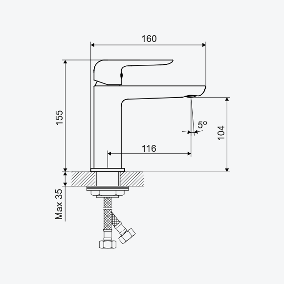 Model umywalkowy niski wyposażony jest w wylewkę o zasięgu 116 mm oraz wysokość całkowitą 155 mm, dzięki czemu doskonale sprawdzi się w połączeniu z większością popularnych umywalek. Korpus wykonany z jednego odlewu podkreśla minimalistyczny charakter baterii i zwiększa jej szczelność oraz trwałość konstrukcji.