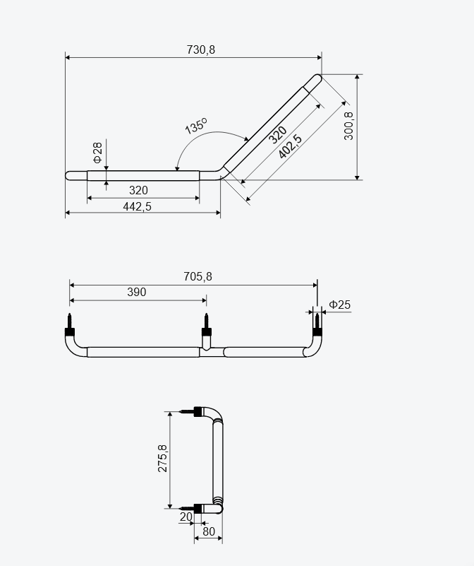 Uchwyt łazienkowy prosty