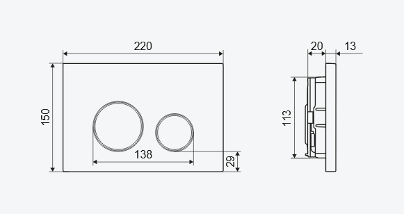 Przyciski Nest są wykonane z tworzywa ABS. Przyciski odpowiadają za oszczędny i pełny zakres spłukiwania, uruchamiane przez naciśnięcie od przodu. Przyciski spłukujące zlicowane są z ramką i nie wystają poza jej obrys. Rozmiar ramki przycisków to 220x150 mm. Są one dostępne w trzech klasycznych kolorach: biały połysk, chrom oraz czarny mat.