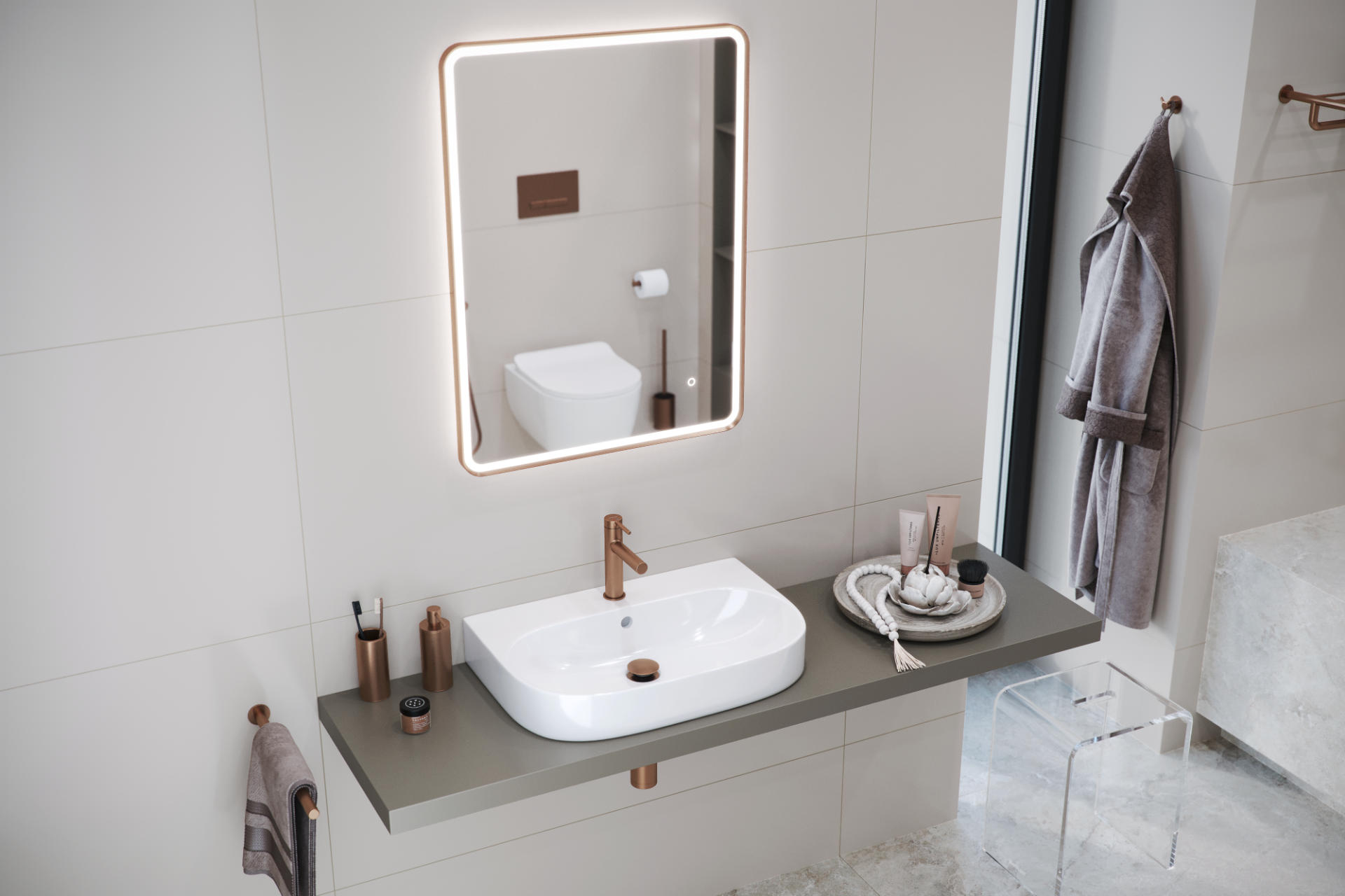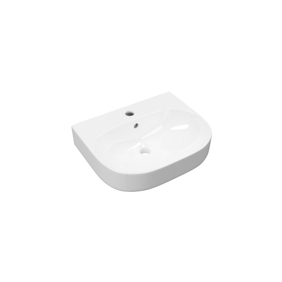 Nowoczesna umywalka nablatowa wykonana z wysokiej jakości ceramiki w eleganckim, białym kolorze z połyskiem. Jej klasyczna forma w połączeniu z funkcjonalnymi rozwiązaniami sprawia, że idealnie wpisuje się zarówno w nowoczesne, jak i tradycyjne aranżacje łazienkowe.