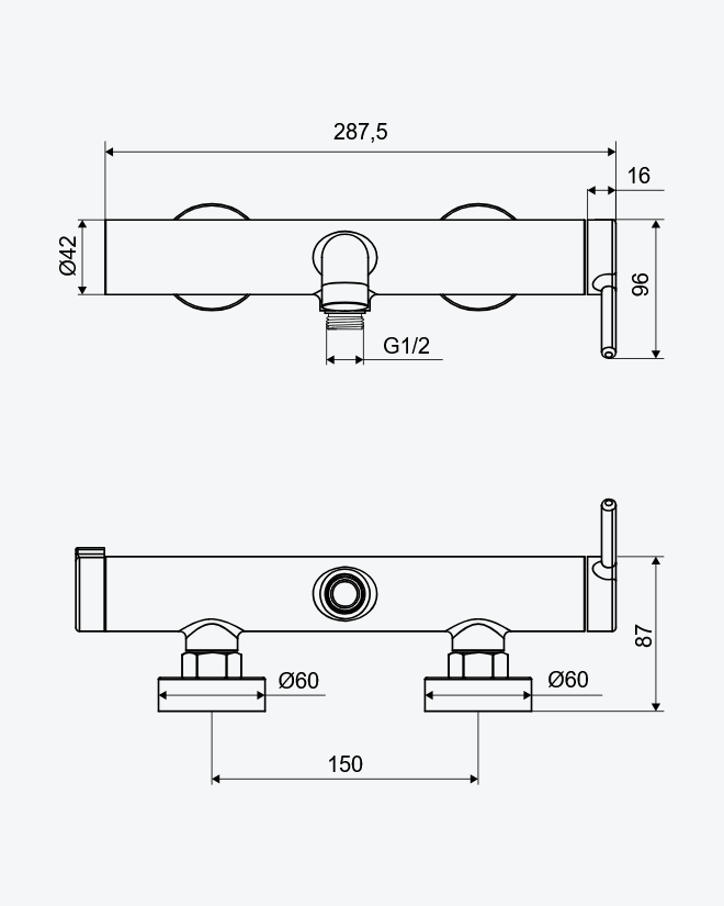 Bateria prysznicowa ścienna posiada standardowy rozstaw mocowań (150mm) oraz komplet krzywek montażowych. Dzięki temu bateria może być instalowana do każdej prawidłowo wykonanej instalacji pod baterię prysznicową. Posiada dolne przyłącze węża prysznicowego. Jej idealnym uzupełnieniem będą zestawy prysznicowe.