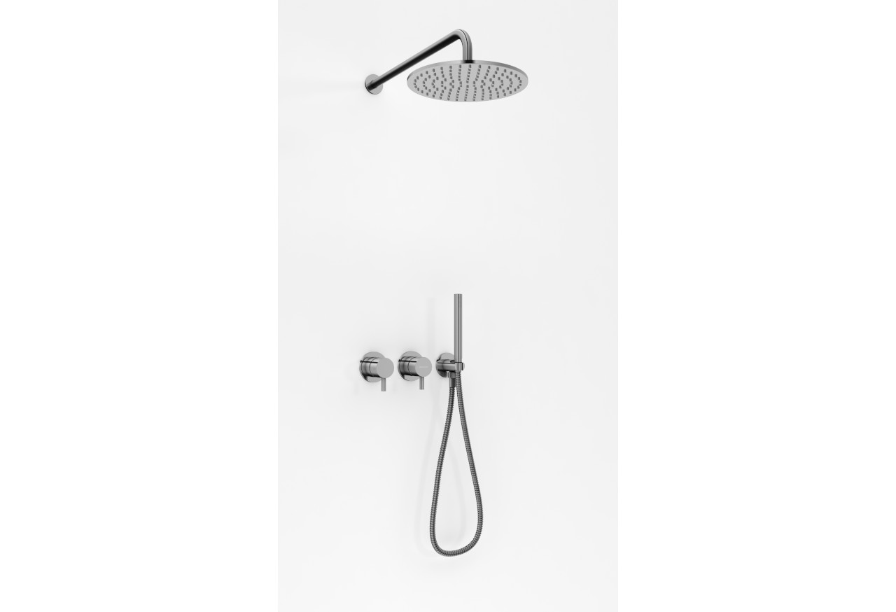 Zestaw został wyposażony w dużą, okrągłą deszczownicę o średnicy 25 cm, która zapewnia równomierny i komfortowy strumień wody, idealny do codziennego relaksu. Uzupełnieniem jest funkcjonalna słuchawka prysznicowa, umożliwiająca wygodne użytkowanie oraz większą kontrolę nad kierunkiem strumienia.