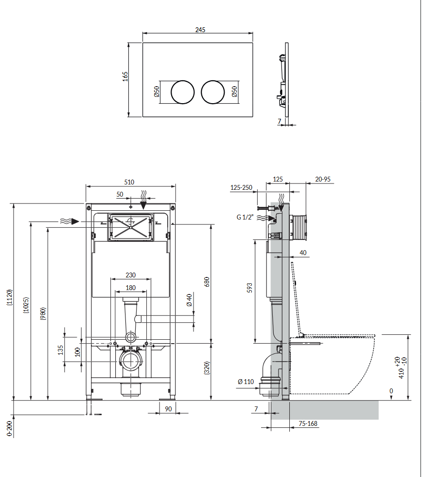 - stelaż podtynkowy STRONGFRAME do zabudowy lekkiej; wysokość: 112 cm, szerokość: 51 cm, głębokość ramy: 12,5 cm, głębokość zabudowy: 12,5 cm–25 cm
