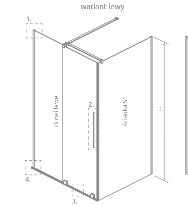 Cena dotyczy samych drzwi . Aby skompletować całą kabinę, należy dokupić odpowiednią ściankę boczną. Przy planowaniu montażu bezpośrednio na posadzce, zaleca się sprawdzenie wymiarów gabarytowych oraz wymiarów do osi szyby, które są podane na rysunku technicznym.